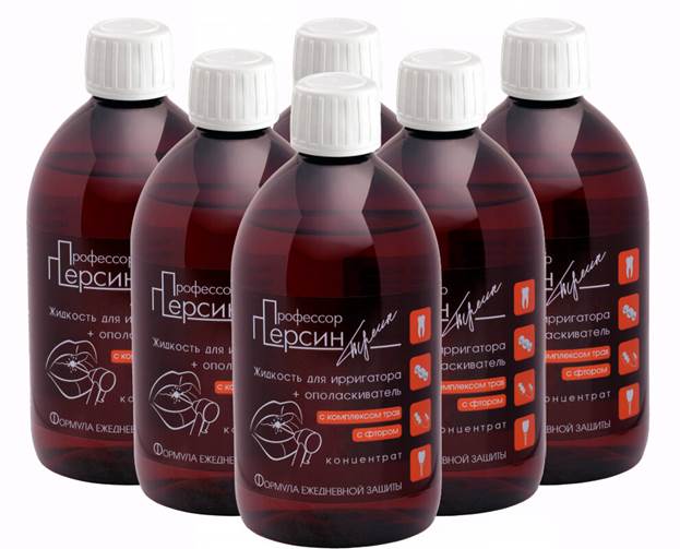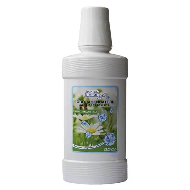 "Docteur Persin" - ne blesse pas l'émail des dents, pénètre dans tous les endroits inaccessibles. Le contenu des herbes, les composants actifs ont un effet renforçant dans toute la cavité buccale, a un effet astringent, éclairant et anti-inflammatoire.
