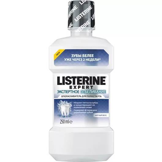 Listerine-Expert - blanchit doucement les dents sans endommager l'émail et la gencive. La saveur de menthe rend votre haleine fraîche pendant longtemps. Les dents deviennent plus blanches après 2 semaines après une utilisation régulière.