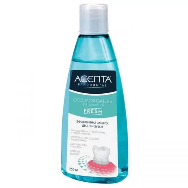 - Impact global. Posséder une polyvalence, en raison des composants entrants, affecte globalement toute la cavité buccale. Javel, éliminer les microbes, prévenir les processus inflammatoires dans les gencives, réduire la probabilité de carie dentaire, donner de la fraîcheur à la respiration. Recommandé pour les adultes, les enfants de plus de 6 ans.