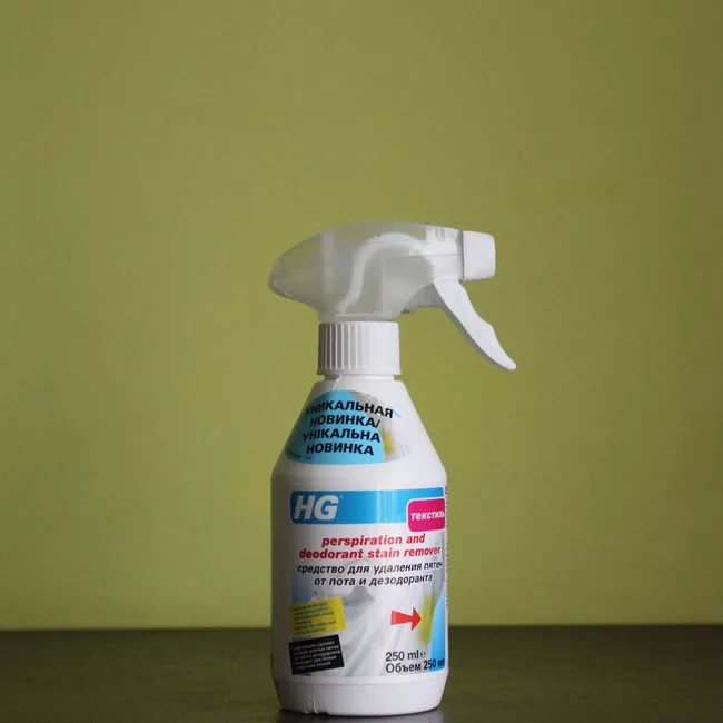 - HG Spray enlèvera les taches jaunes sur les vêtements de la transpiration et du déodorant.