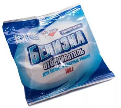 Le faible coût de l'eau de Javel en fait un favori parmi ces produits - 100 g - 10 roubles.