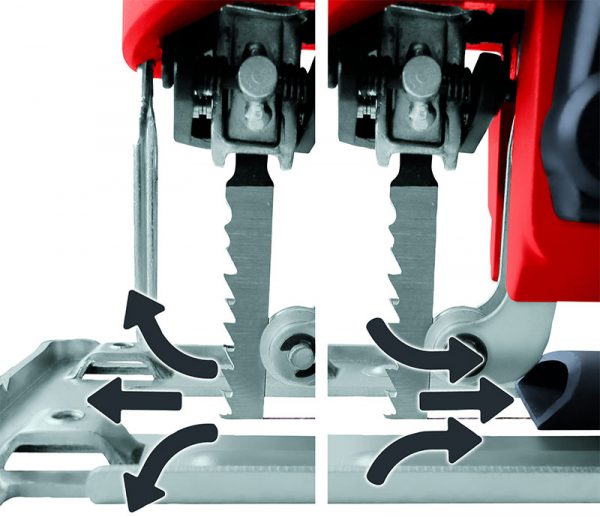 La fréquence de course de la scie est un indicateur qui affecte les performances de l'outil. Plus la fréquence est élevée, plus la pièce sera rapidement sciée. Dans le cas d'un arbre, plus la vitesse du fichier est élevée, mieux c'est pour le processus. Dans le cas du métal, ce n'est pas le cas, car pour éviter la surchauffe de la lime, la vitesse de déplacement doit être faible. Les modèles modernes de scies sauteuses permettent d'ajuster la vitesse du fichier. C'est le seul moyen de sélectionner des indicateurs de performance individuels avec différents matériaux.