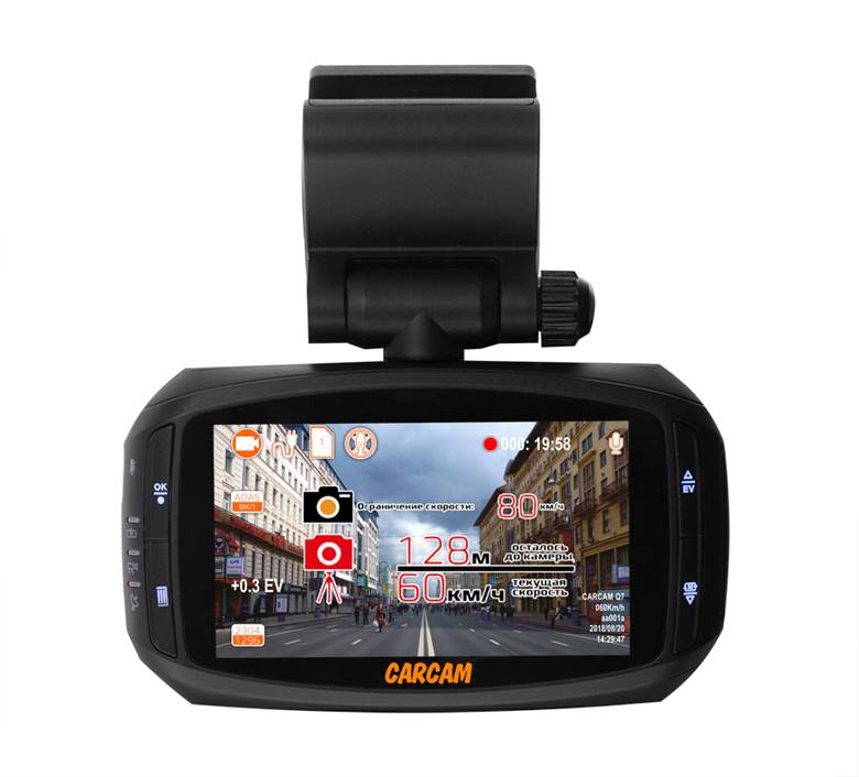 CARCAM Q7, GPS, GLONASS7900Le boîtier est de très haute qualité et n'a pas peur des dommages mécaniques. Un ensemble de supports vous permet de maintenir de manière fiable l'enregistreur en place.