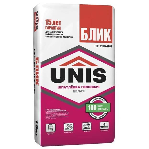 Il s'agit d'un composé de gypse utilisé pour les travaux intérieurs. Permet de réaliser une couche d'une épaisseur de 4 à 15 mm. Vendu en sacs de 30 kg. Si la couche mesure 1 cm, un paquet suffit pour 4 m2. Il est utilisé pour niveler la surface avant de terminer le mastic.