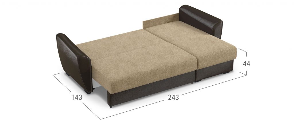 L'accordéon et le lit pliant français sont idéaux pour ceux qui souhaitent créer un plan sans couture lors du pliage du canapé d'angle. Plié, l'accordéon est une sorte de «pli» qui, lorsqu'il est tiré sur la bordure avant, se redresse et se transforme simplement en lit.